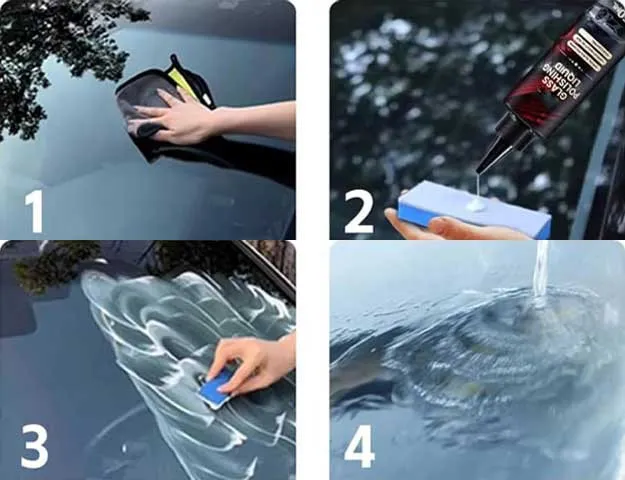 Samo nanesite tekućinu na meku krpu, obrišite staklo kružnim pokretima, a zatim isperite vodom. Pogodno za sve vrste automobilskih prozora - prednja, bočna i stražnja, čak i zatamnjena stakla.