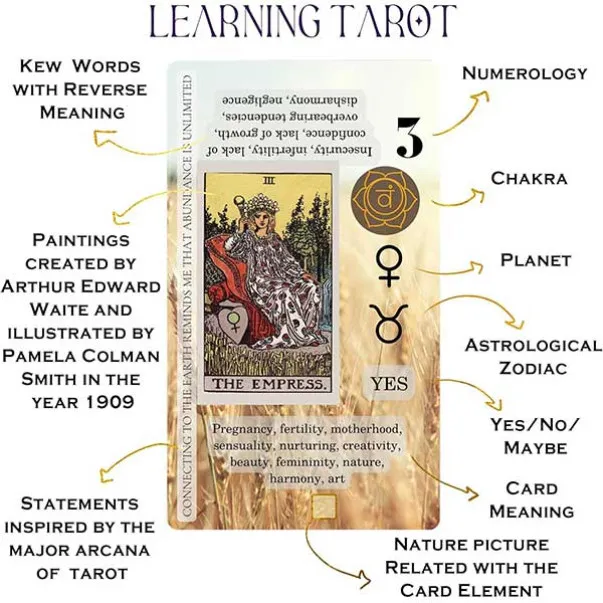 Osmišljen da vam pomogne bez napora tumačiti karte. Ispisana značenja na svakoj kartici i slike bogate simbolima kako bi se poboljšale intuitivne interpretacije.